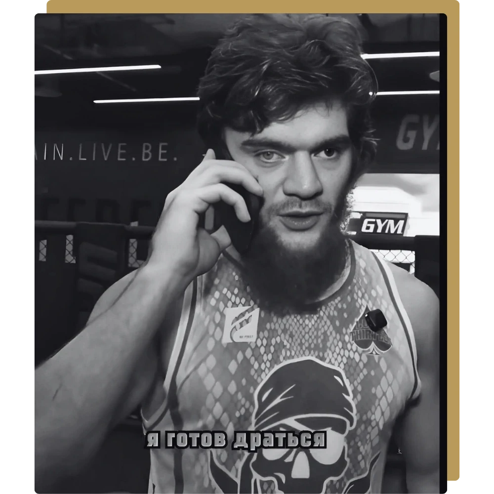Юмор, дерзость и стиль: Шара Магомедов в брендированной экипировке BeFirst похищает «пленницу» перед боем.